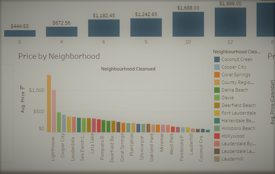Visualized the distribution of average Airbnb prices in Broward County based on neighborhood, number of bedrooms, and month